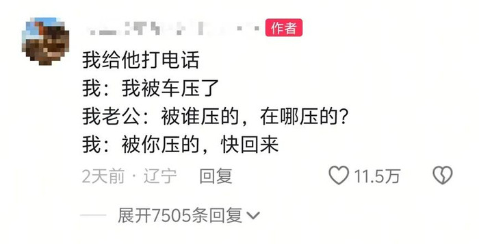等到该女子躺在地上打电话给丈夫,哭诉自己被车压了,丈夫一听急了:“被谁压的?在哪压的?”女子回复“被你压的”后,丈夫赶紧挂断电话驾车返回。