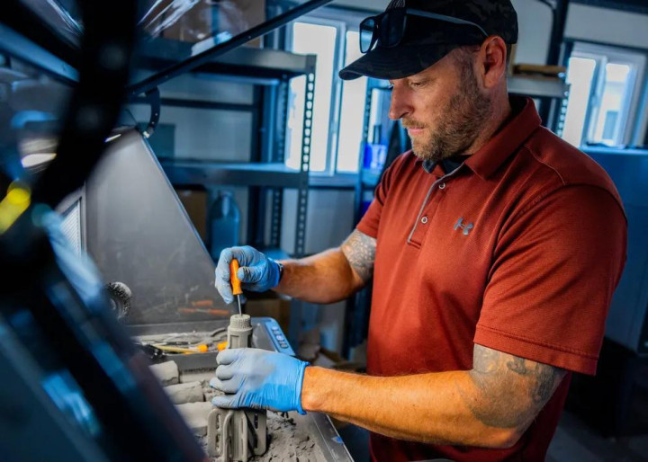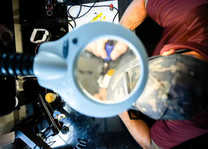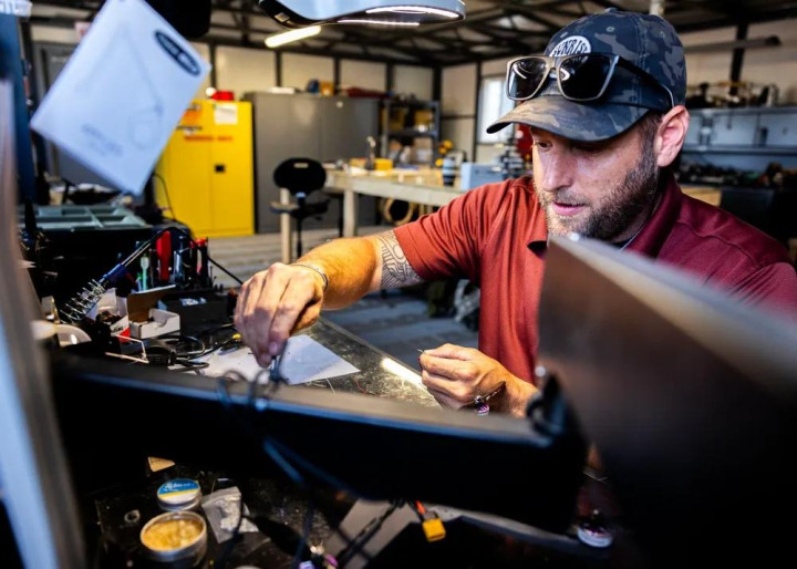 2025年5月28日,Matthew Theilacker,联合反小型无人机大学的无人机系统(UAS)飞行员兼工程师,亚搏app登录在俄克拉荷马州西尔堡检查无人机制造部件。该设施独特的无人机组装、维修和再利用能力支持训练,同时为陆军节省数千美元。