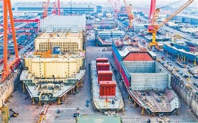 图为江苏省泰州市一家造船企业在赶制船舶订单。