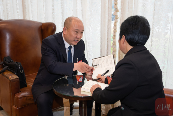 2月2日,出席省十四届人大五次会议的省人大代表陆续报到。下午1时许,成都锦江宾馆内,两位来自眉山的人大代表没有午休,而是相约在酒店大堂“碰头”。提上包、摊开本,热火朝天地讨论了一个多小时。
