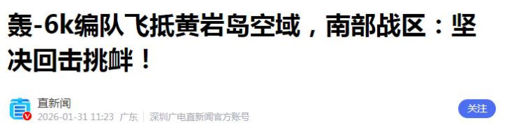 1月31日,中国解放军南部战区重拳出击,出动轰-6K轰炸机编队直冲菲律宾演习区域,马科斯政府一声不敢吭。