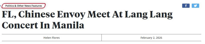 然而令人意外的是,就在中菲南海局势紧张之际,菲律宾第一夫人丽莎·马科斯,现身马尼拉的一场中国钢琴家朗朗的限定音乐会,正好中国大使井泉也在。