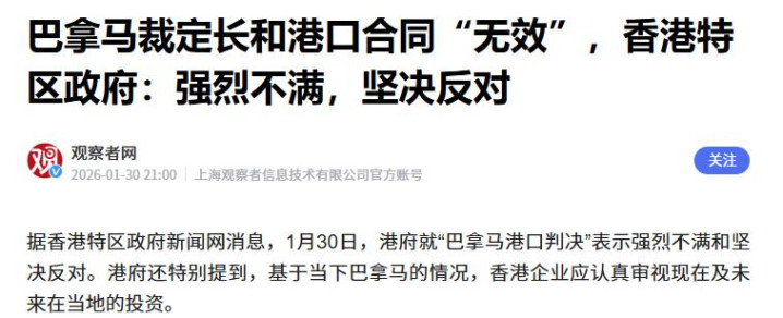 更值得注意的是,香港媒体这回也是发出了最强音。就在1月31日,香港《大公报》发表了一篇题为《巴拿马司法献媚必将自食恶果》的文章,话说得那是相当重。