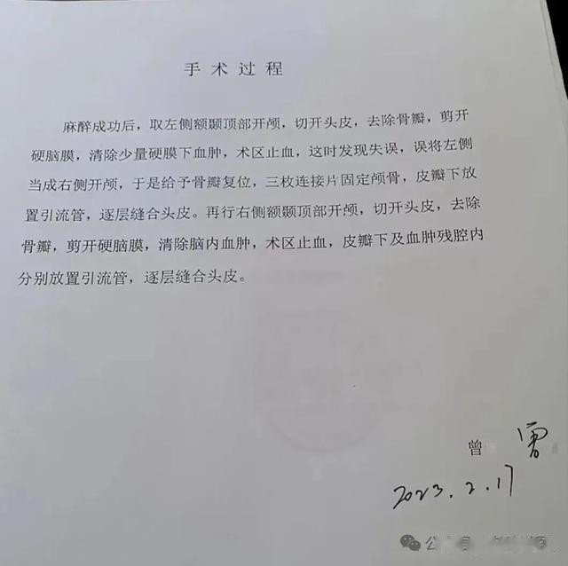 事情源于包头市民王先生的一次意外。因在家中不慎摔倒,王先生被紧急送往包头市中心医院,CT检查确诊为右脑出血,必须立即进行手术。然而,在术后的第三天,王先生的妻女惊恐地发现,父亲本该只有一侧伤口的头部,竟然左右两边都缠着纱布。这一反常现象让家属心存疑虑,随即封存的病历最终揭开了令人震惊的真相:手术记录白纸黑字地写着,医生竟然误将左侧大脑当成了患侧进行了开颅,发现错误后缝合左侧,转而又在正确的右侧实施了开颅手术。一场本只需单侧进行的手术,让患者无端遭受了双侧开颅的巨大身心创伤。