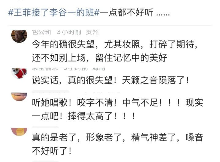 还有的网友合计王菲竟然际遇了岁月的侵蚀,精神气神不如以往,嗓音更是不堪已经。