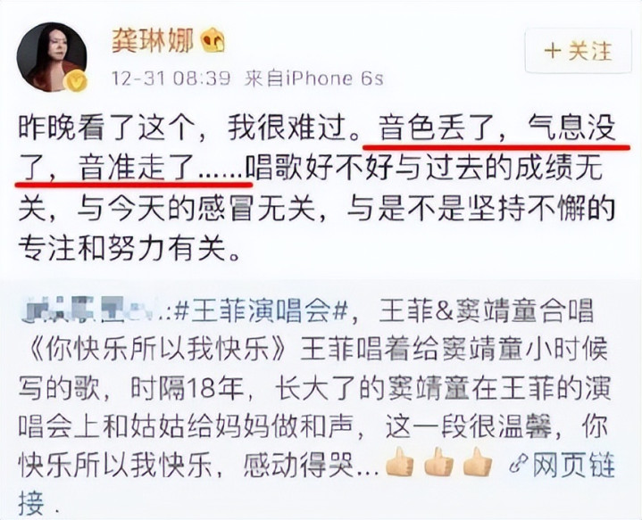听到这些话的时候,未免念念起多年前龚琳娜对王菲的评价,放在现时可谓字字诛心……