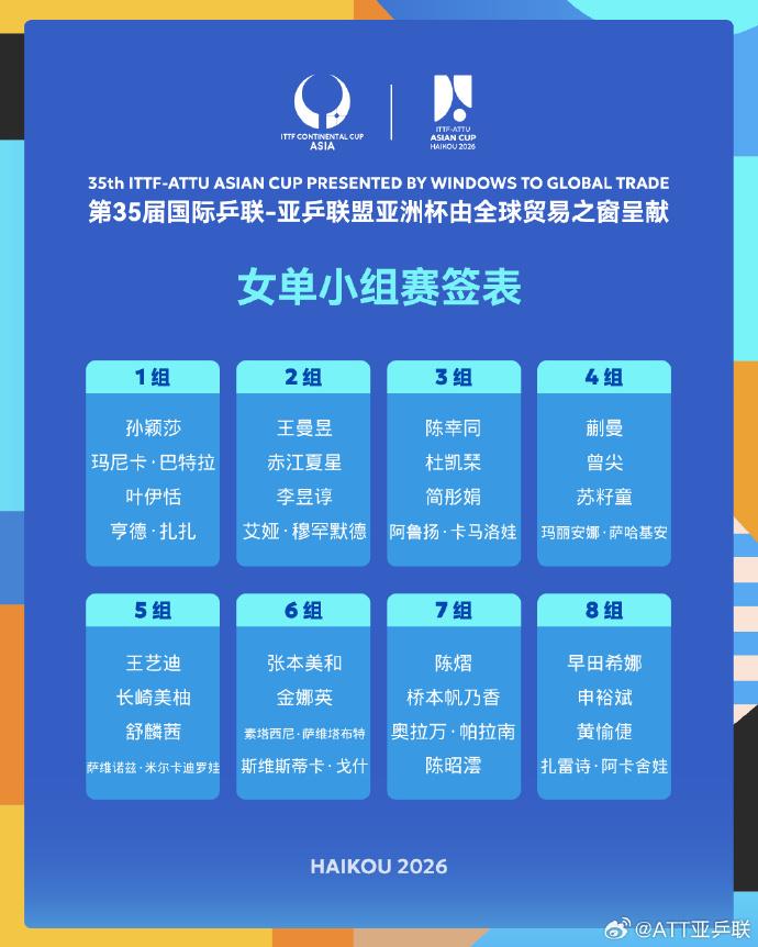 第35届国际乒联-亚乒联盟亚洲杯将于明日开赛,一分彩app下载亚搏 男、女单小组赛签表出炉。