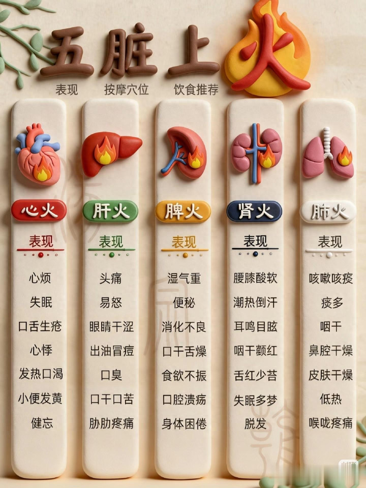 健康无小事,五脏火气藏着全身健康密码。赶快转发给家东说念主一又友,一都对照自查,科学降火,养出好体质~