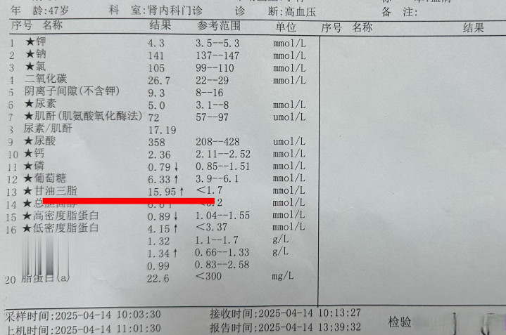 · 高甘油三酯血症:多与饮食、肥胖、糖尿病相关;