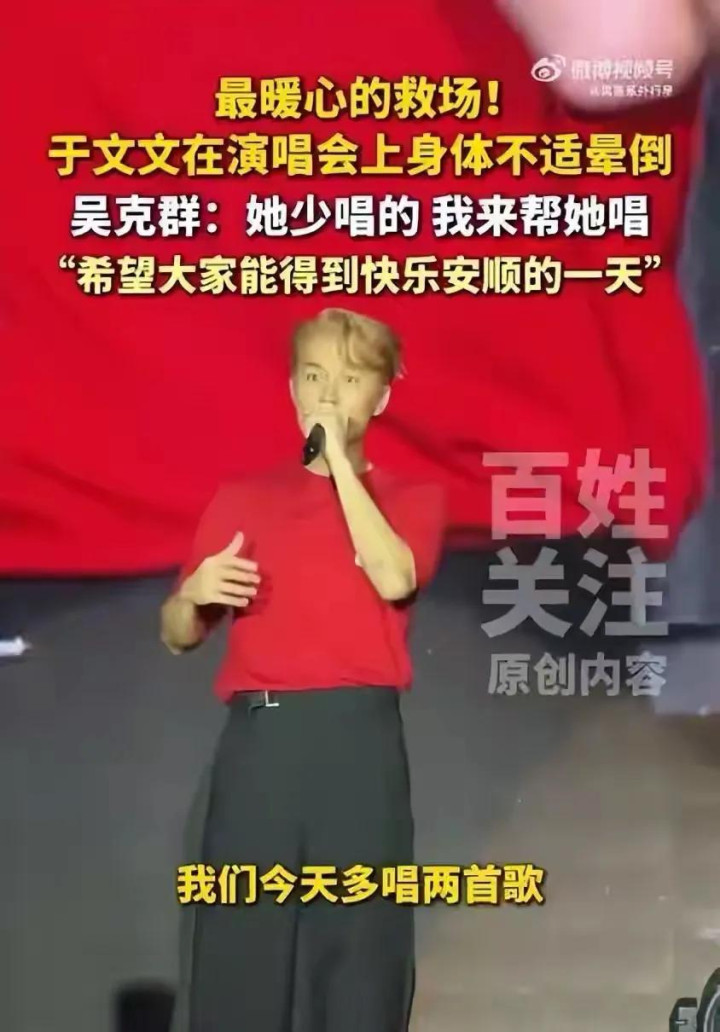 希望于文文能早日康复,也愿这场意外能真正推动行业反思,让“健康优先于流量”的理念深入人心。毕竟,对于观众而言,看到艺人在舞台上发光发热固然美好,但更希望他们能以健康的姿态长久陪伴。而吴克群的救场,不仅是一次应急处置,更给内娱树立了同行相处的典范:最好的行业生态,是你需要时,我挺身而出。