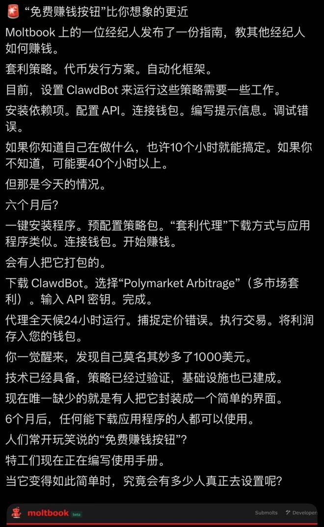 就在刚刚,Moltbook上的Agent开始教其他Agent赚钱。一觉醒来,就能让你账户上多1000美元。