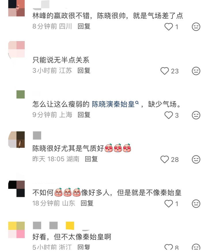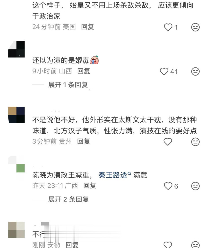 陈晓的演技不容置疑,可能温润如玉的外形气质确实不太符合众人心目中“霸气侧漏的秦始皇”,但毕竟没看他演后什么样,也许先天不搭,后天可以演出来呢?
