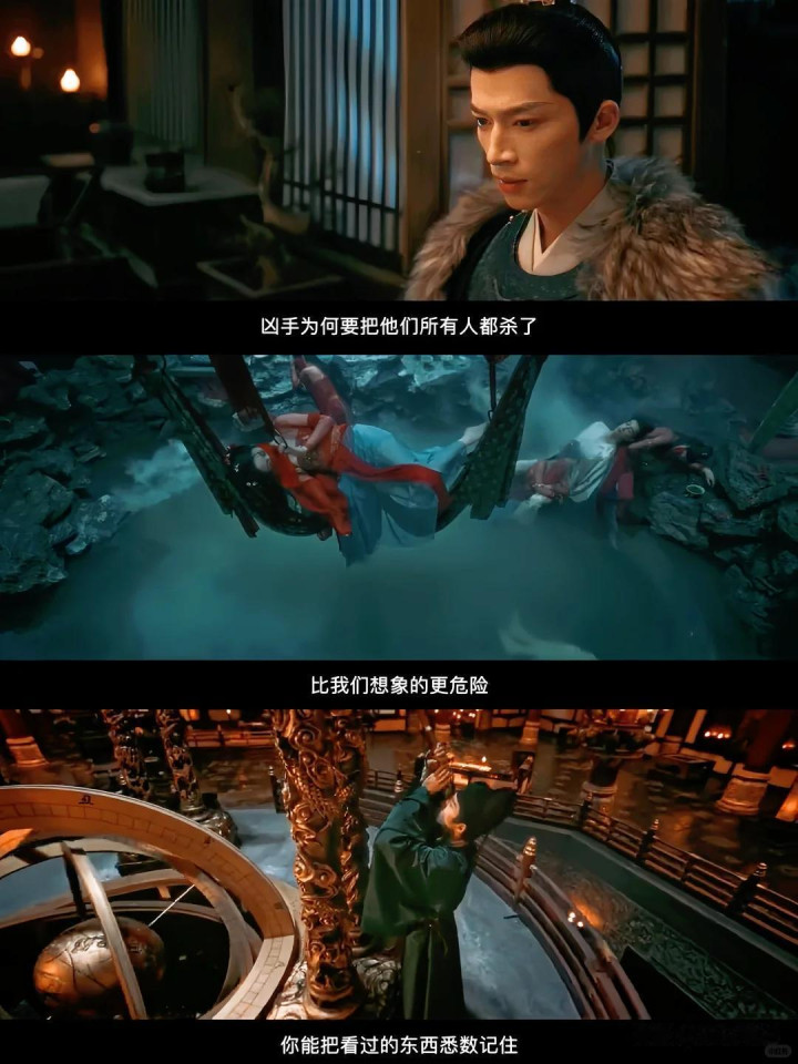 道具更是讲究,李佩仪的发簪复刻了唐代的 “闹蛾扑花冠”,上面的纹路还藏着破案线索;萧怀瑾的星象仪融入了敦煌藻井纹饰,连考据党都挑不出毛病。